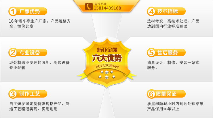深圳市新亞金屬制品有限公司坐落于沿海經濟中心——深圳,是國內城市公共設施、交通設施、裝飾工程企業之一,是一家具有自主研發和設計能力的以公交候車亭為主導的綜合性金屬制品企業。